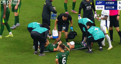 第64分钟,张玉宁无法坚持比赛,被担架抬下