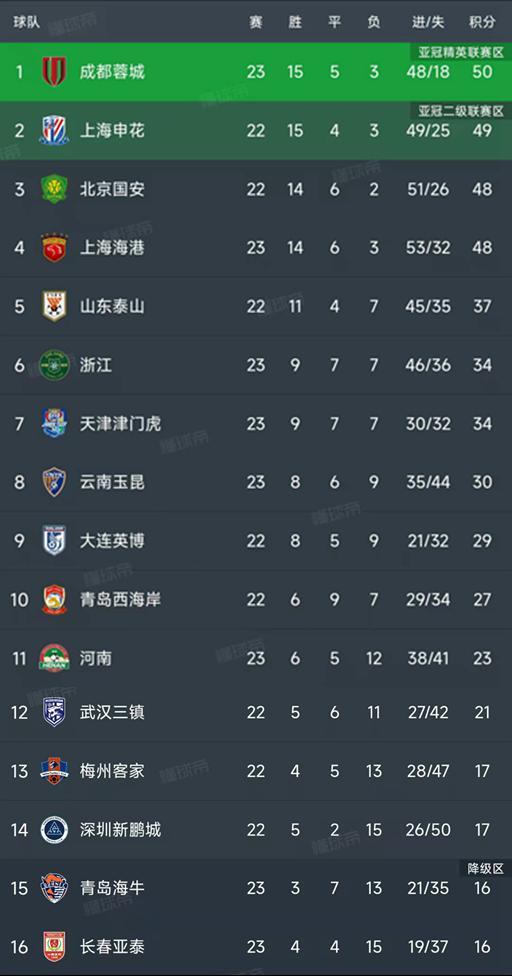 蓉城过去两场比赛都是4-1获得胜利,而且对阵申花、国安、海港、山东都保持不败金身,他们有争冠的潜力,但考验还在冲刺阶段,目前蓉城以50分登顶,领先了海港2个积分。海港连续13轮不败金身告破,排名下滑到第4名。申花本轮客场PK三镇,国安客场PK山东泰山