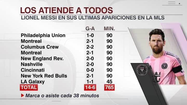 据ESPN统计,近9场美职联比赛,梅西14球6助制造20粒进球。38分钟制造一个进球!
