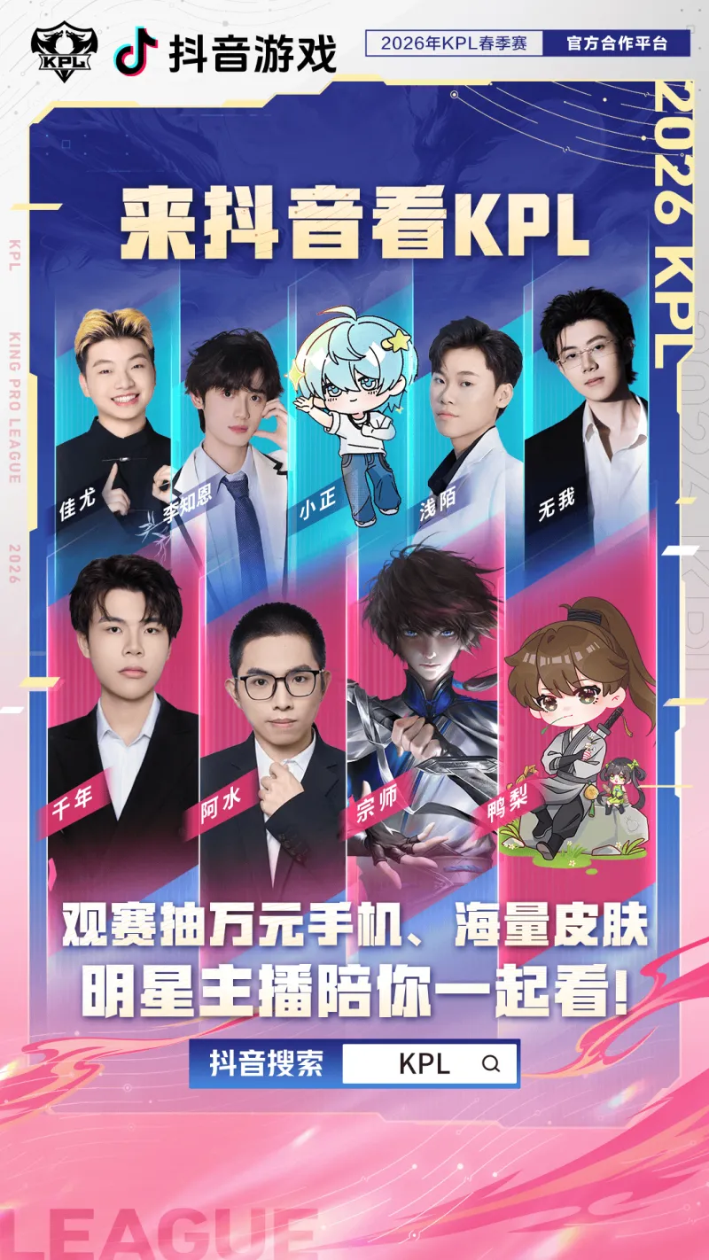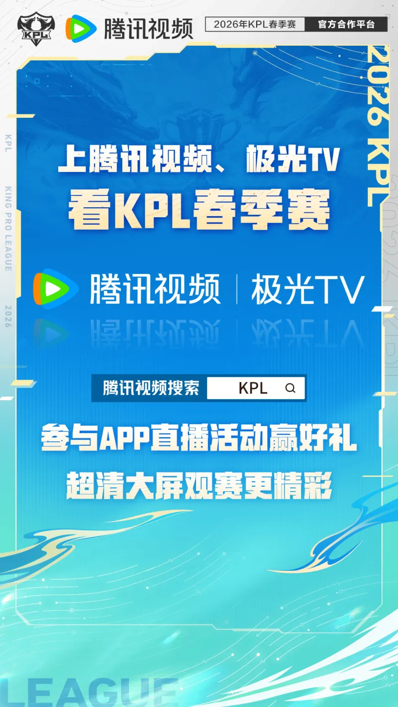 虎扑01月14日讯 KPL官方公布春季赛观赛渠道:新增抖音,总共九大渠道原文如下:【2026KPL春季赛观赛指南】新鲜出炉!2026年KPL春季赛将于1月14日14:00正式开启!欢迎小伙伴们锁定哔哩哔哩、抖音、斗鱼直播、虎牙直播、快手、视频号、腾讯视频和极光TV、微博、小红书观看比赛直播,参与观赛活动赢好礼!更有超豪华观赛团主播阵容,陪你沉浸式畅享精彩赛事...