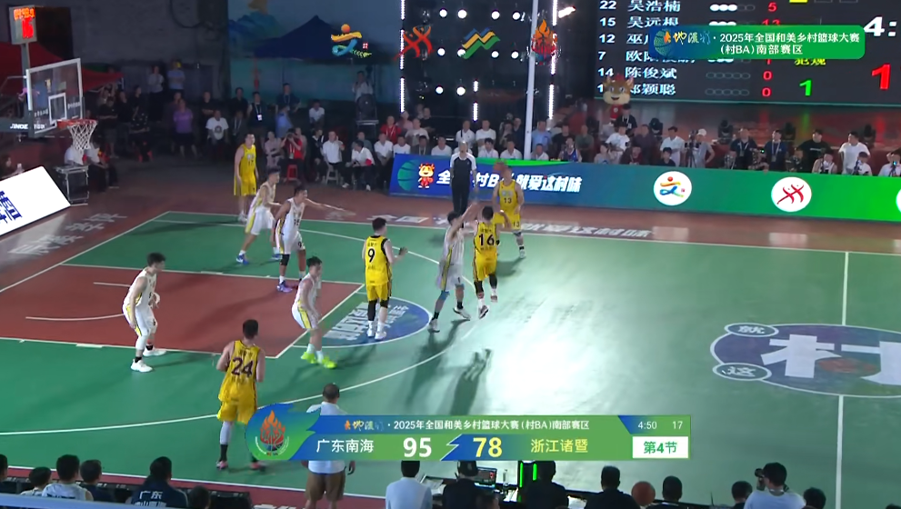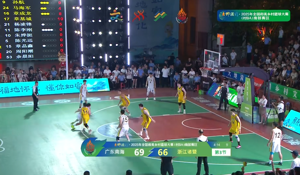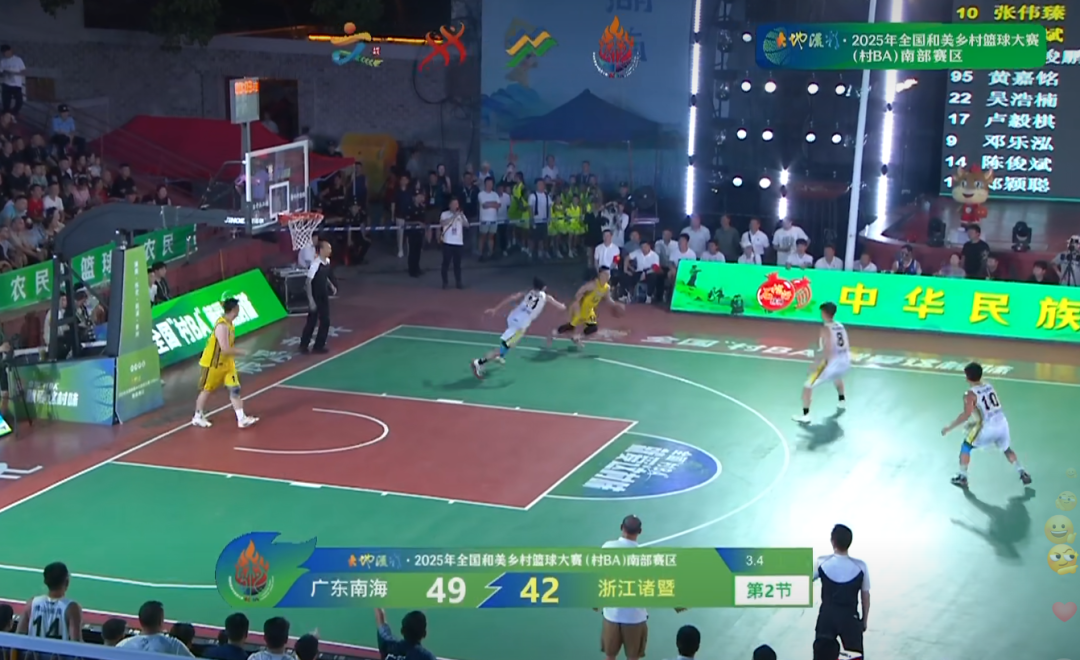 今晚(8月26日)全国“村BA”南部赛区半决赛精彩上演广东南海103-85战胜浙江诸暨顺利打进决赛!值得注意的是南海队在小组赛中曾败于对手除了场上队员拼尽全力场下的“家人们”也很拼本场比赛一上来,双方各自展开快速攻防,比分一直交替上升,在第二节中段,南海队一度领先对手11分!南海队在快速反击罚球稳定性等方面占据一定优势上半场结束南海队以49-42领先下半场开...